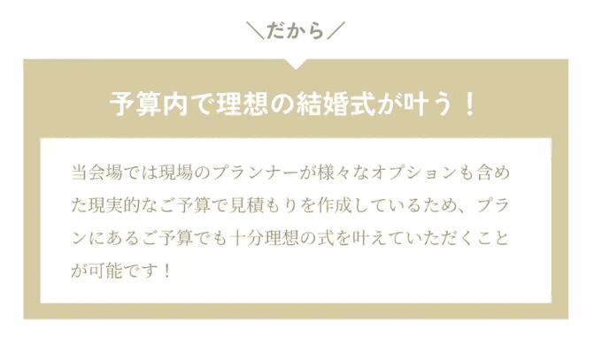 ※公式HP以外からの予約(結婚情報誌、相談カウンターなど)の場合はベストプライス保証の対象外となります。